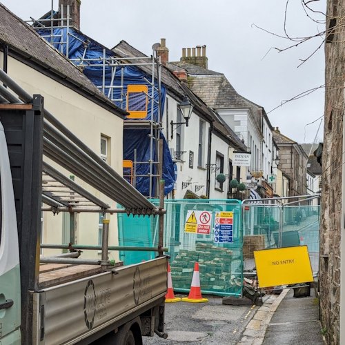 The scaffolding design has now been approved and is under construction, so Fore Street should be partially reopened in the next few days.