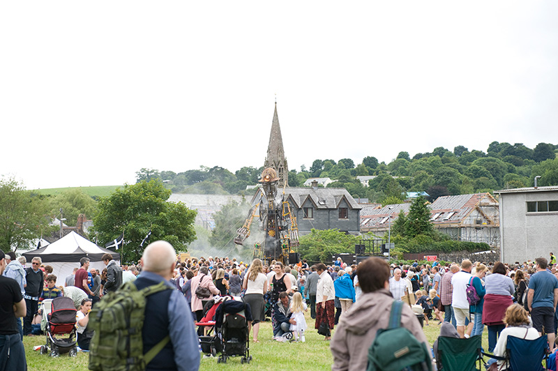 As part of the ceremony, Lostwithiel Mayor Ian Gillett was given a gift by the Man Engine and the crowd were encourage to sing and chant specially composed songs.